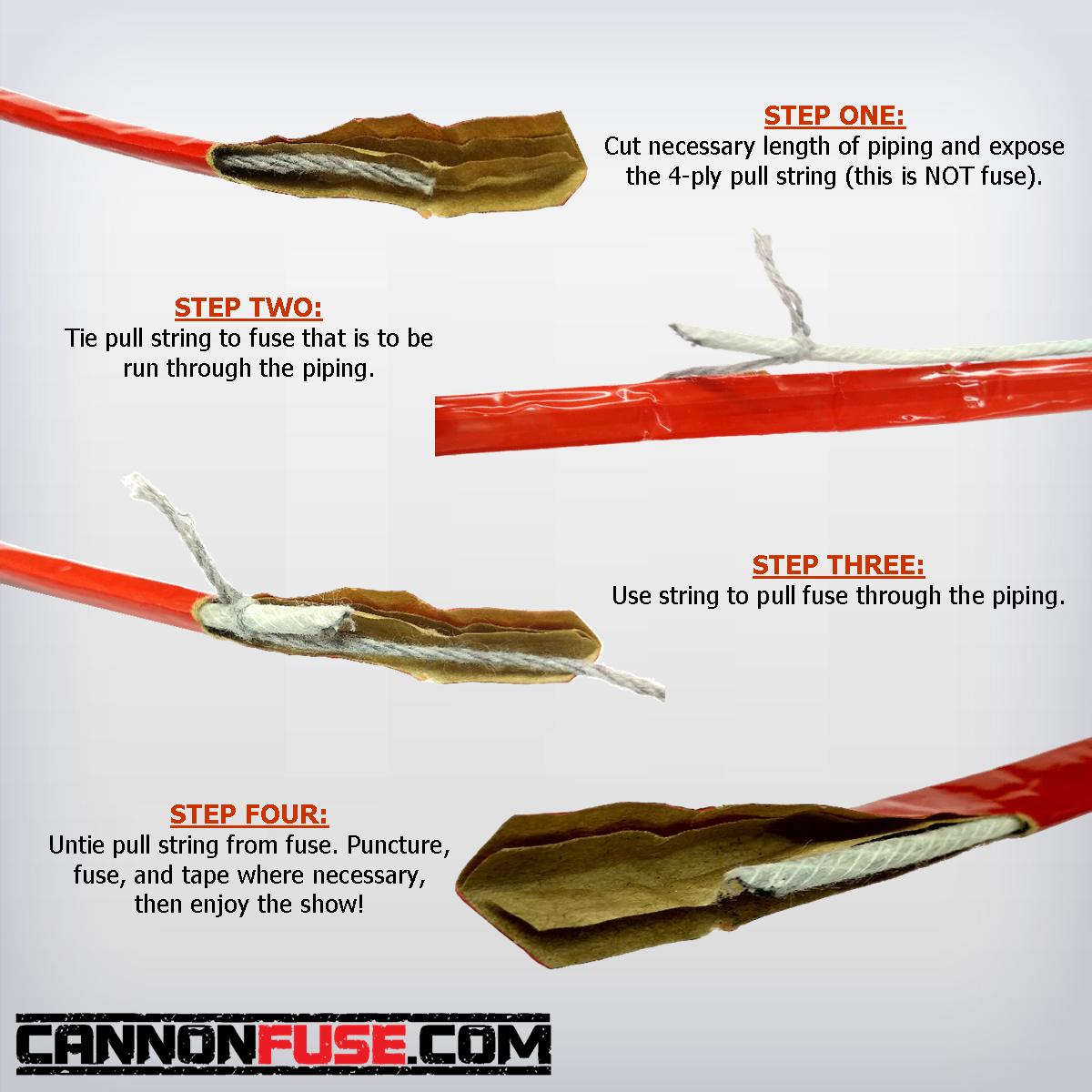Create your own "quickmatch" with this high-quality, waterproof piping! Rather than a string coated with black powder, this piping contains a 4-ply string that simplifies the process of pulling your fuse (or your homemade blackmatch) through. Simply cut the length you need, run your fuse/match through, and connect your fireworks by puncturing the piping, inserting the fuse, and taping. It's that easy!