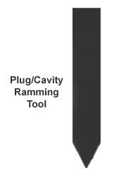 As you can see from the illustrations, the plug/cavity ramming tool is nothing more than a wooden or metal rod with the end ground down to a point, that slips easily into the cardboard tube. The best choice for making the tool is aluminum or steel. You're going to be pounding on this thing with a hammer, so one made of wood probably wouldn't last you all that long. You'll also need to make an identical ramming tool without a point on the end. This will be used for compacting the propellant into the tube. The step-by-step procedure follows.